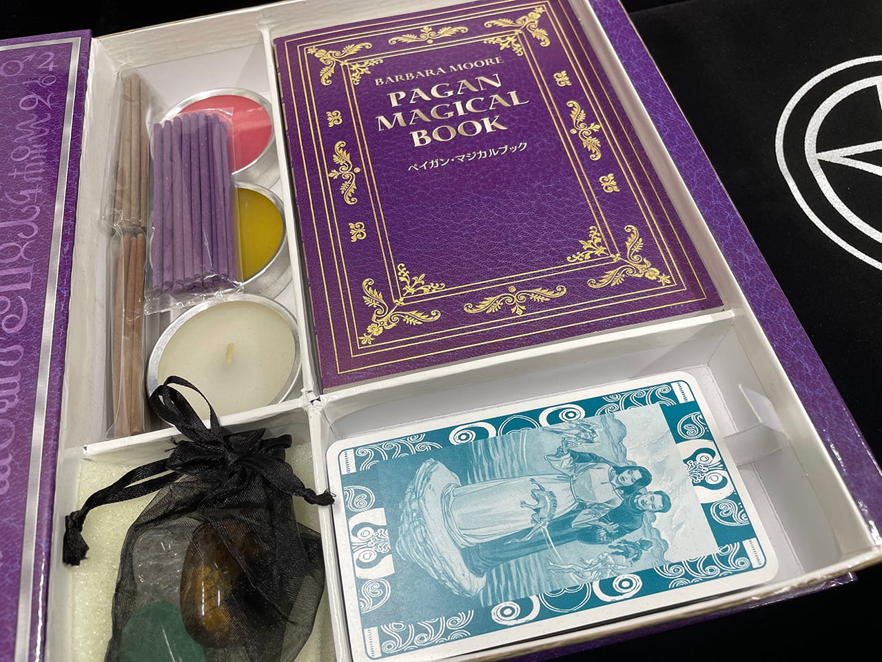 セット内容:ペイガンタロット、アルタークロス、キャンドル、お香、クリスタル、日本語版解説書