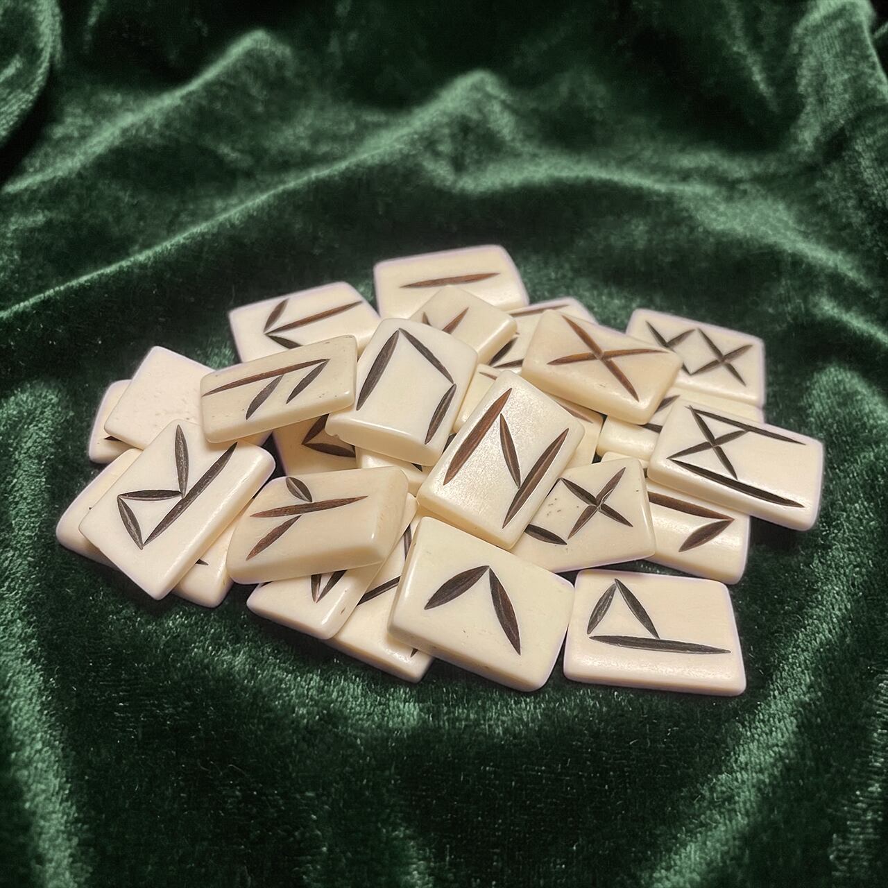 古来、北欧の賢者たちは、自然界の精霊が宿る石や木、そして動物の骨にルーン文字を刻み、神々の神託を受け取ってきました。この「ボーン・ルーンセット」は、天然素材ならではの手触り、そして「生」のエネルギーを宿しています。使い込むほどに手に馴染み、あなた自身のエネルギーを吸収して独特の風合いへと変化していくその過程は、まさに道具を「育てる」魔術的な悦びを与えてくれるでしょう。